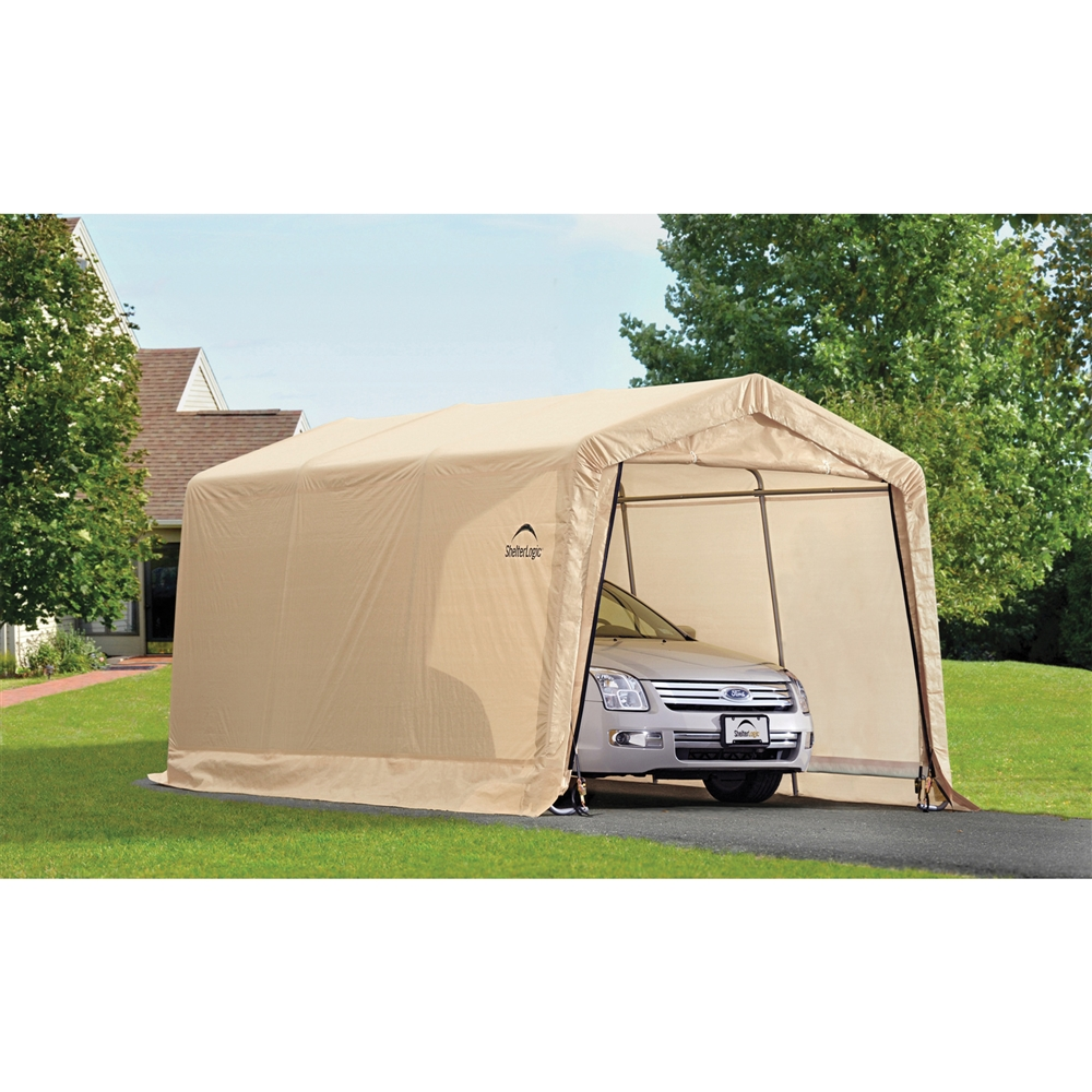 The ShelterLogic AutoShelter 10 x 15 ft. Instant Garage shelter is an excellent compact storage solution for motorcycles, ATVs, jet skis, trailers, lawn and garden equipment, tractors, snow mobiles, wood or other bulk storage. A good quality fabric structure at a affordable price.
