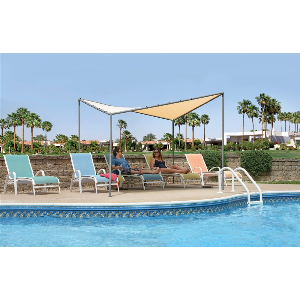 The Shelterlogic Del Ray Gazebo 10 ft. x 10 ft. is a heavy duty sophisticated shade solution. Outstanding quality construction makes an elegant shade product at an affordable price. The Del Ray is perfect for patios, backyards, camp sites, and decks offering durable seasonal shade protection. A long-lasting 300-D water-resistant cover is CPAI-84 and Sec.6 fire-rated and protects against harmful UVA and UVB rays. The tan cover attaches easily with perimeter bungee cords. Strong carbon 2 in. steel tubing is powder coated in charcoal gray to resist chipping, peeling, corrosion, and rust. The Del Ray Gazebo is sturdy and stable with a bolt-connected and welded T-frame. Includes temporary spike anchors and all hardware. Assembles easy – no added parts needed.