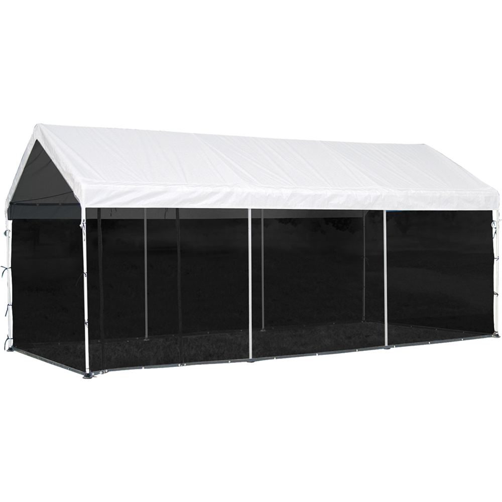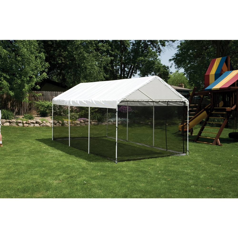 The ShelterLogic MaxAP 2-in-1 Canopy Pack is great for any seasonal shade occasion including vehicle or boat shade, backyard, events, camping, commercial job sites, picnic areas, lawn and garden equipment storage, pool or patio cover and much more.