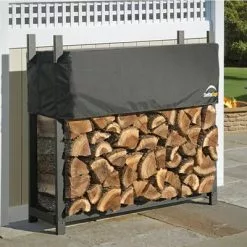 Shelterlogic Firewood Rack With Black Powder-Coated Finish And 2-Way Adjustable Polyester With Cover, 8 Ft