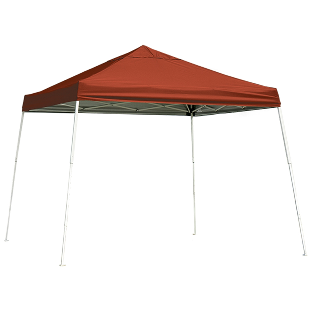 The ShelterLogic 12 x 12 ft. slant leg Pop-Up features an open top combined with sturdy construction and stylish design. Ideal for commercial use or for sports, backyard, tailgating, or camping.
