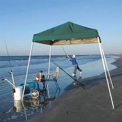 This ShelterLogic® pop-up canopy features an open top combined with sturdy construction and stylish design. Ideal for commercial use or for sports, backyard, tailgating or camping. Limited one-year warranty.