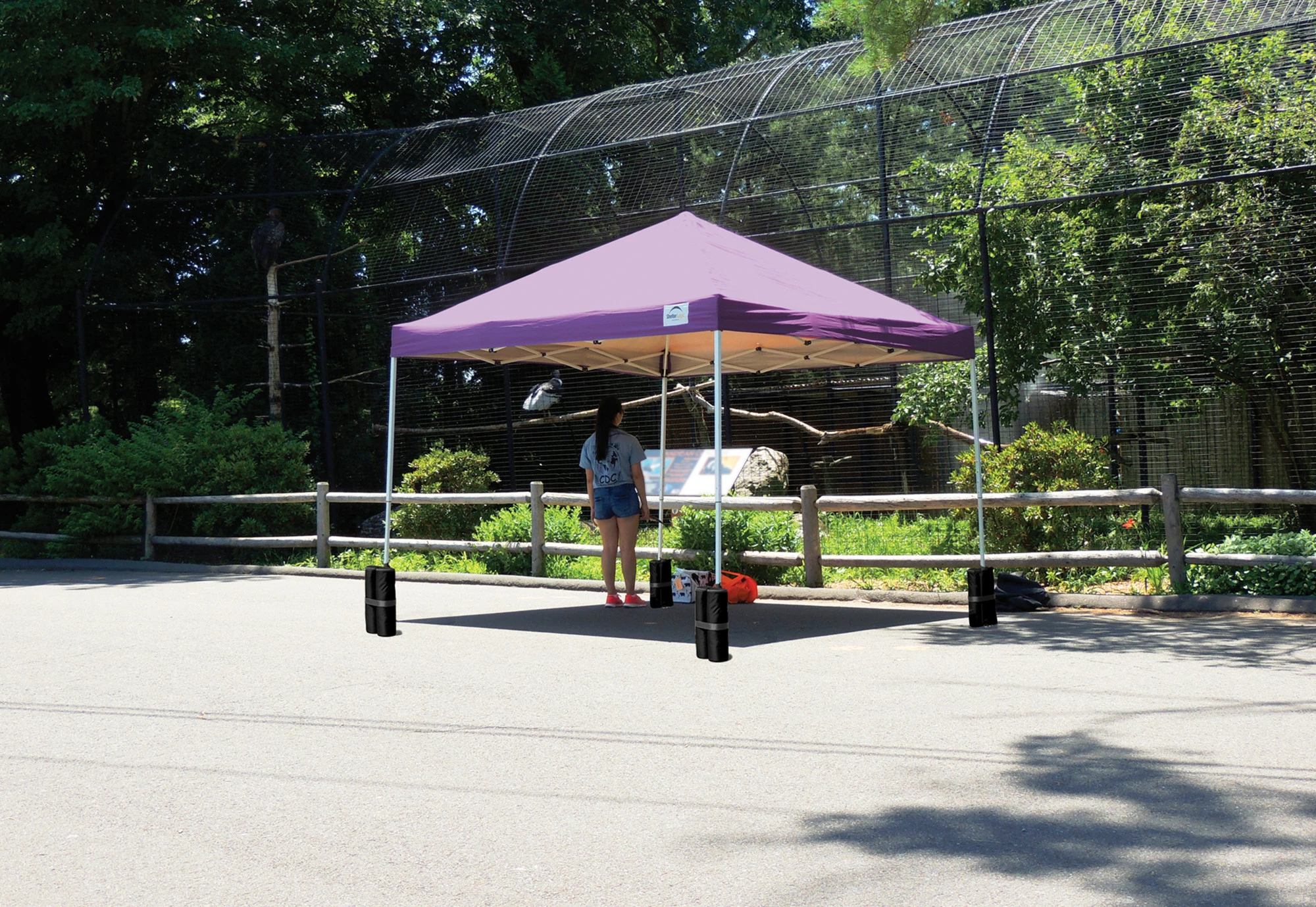 This ShelterLogic® pop-up canopy features an open top combined with sturdy construction and stylish design. Ideal for commercial use or for sports, backyard, tailgating or camping. Limited one-year warranty.
