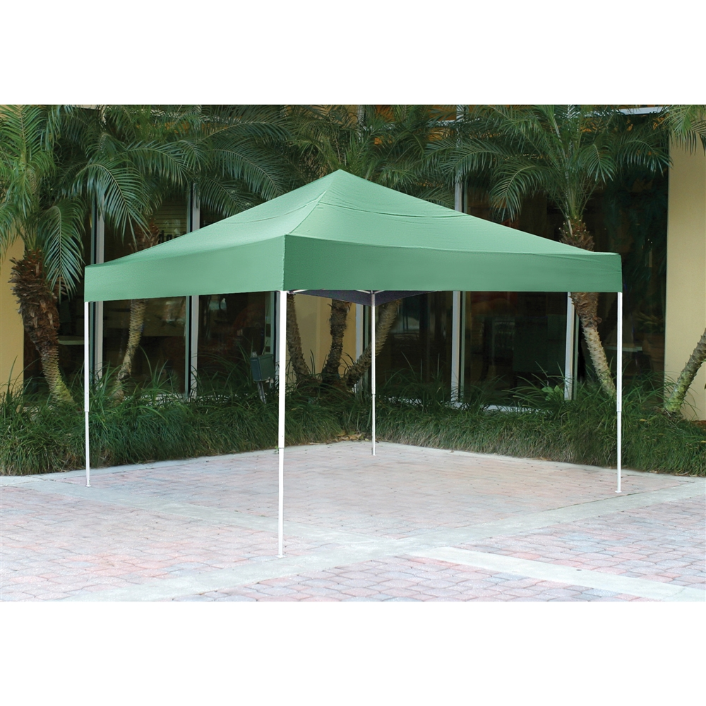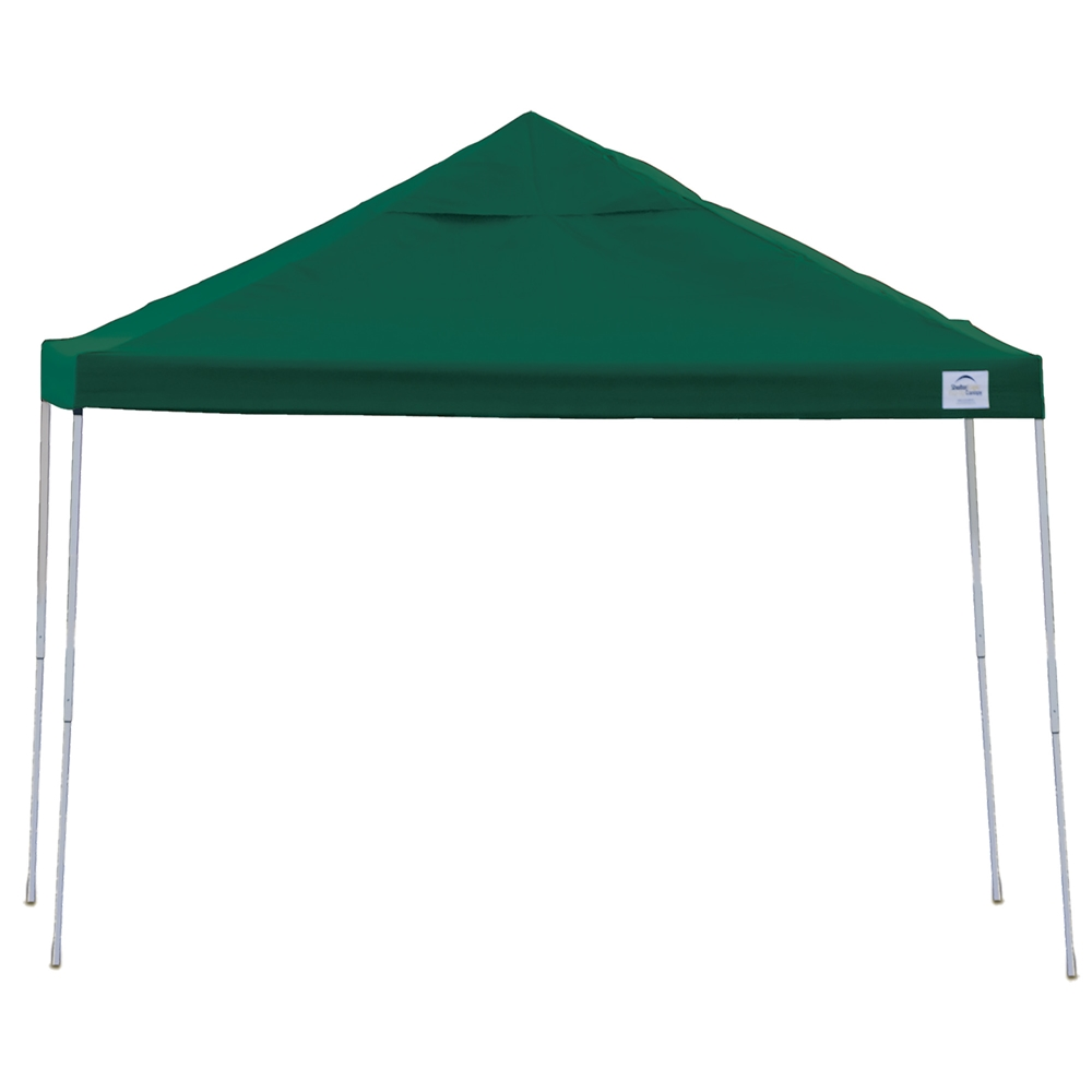 The ShelterLogic 12 x 12 ft. slant leg Pop-Up features an open top combined with sturdy construction and stylish design. Ideal for commercial use or for sports, backyard, tailgating, or camping. 12 x 12 ft. Pop-Up Canopy in green.