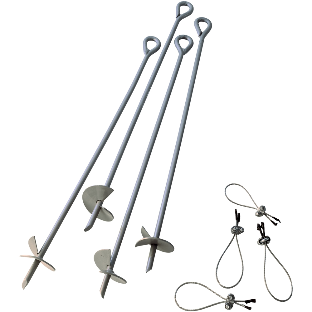 To extend the life of your ShelterLogic canopy, garage, shed and more it’s important to use proper anchoring techniques. The ShelterAuger Earth Anchor kit comes with everything you need to securely anchor your shelters, canopies and instant garages.