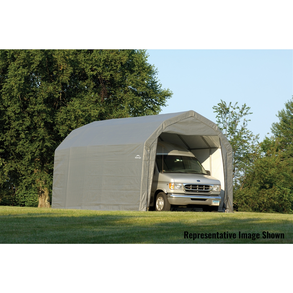 | Package Contents | 1 STEEL FRAME, 1 FITTED COVER, 2 DOUBLE ZIPPERED FRONT DOOR PANELS, 30 IN. AUGER ANCHORS, 2 PULL-EAZE ROLL-UP DOOR KITS, 1 SHELTERVENT KIT |