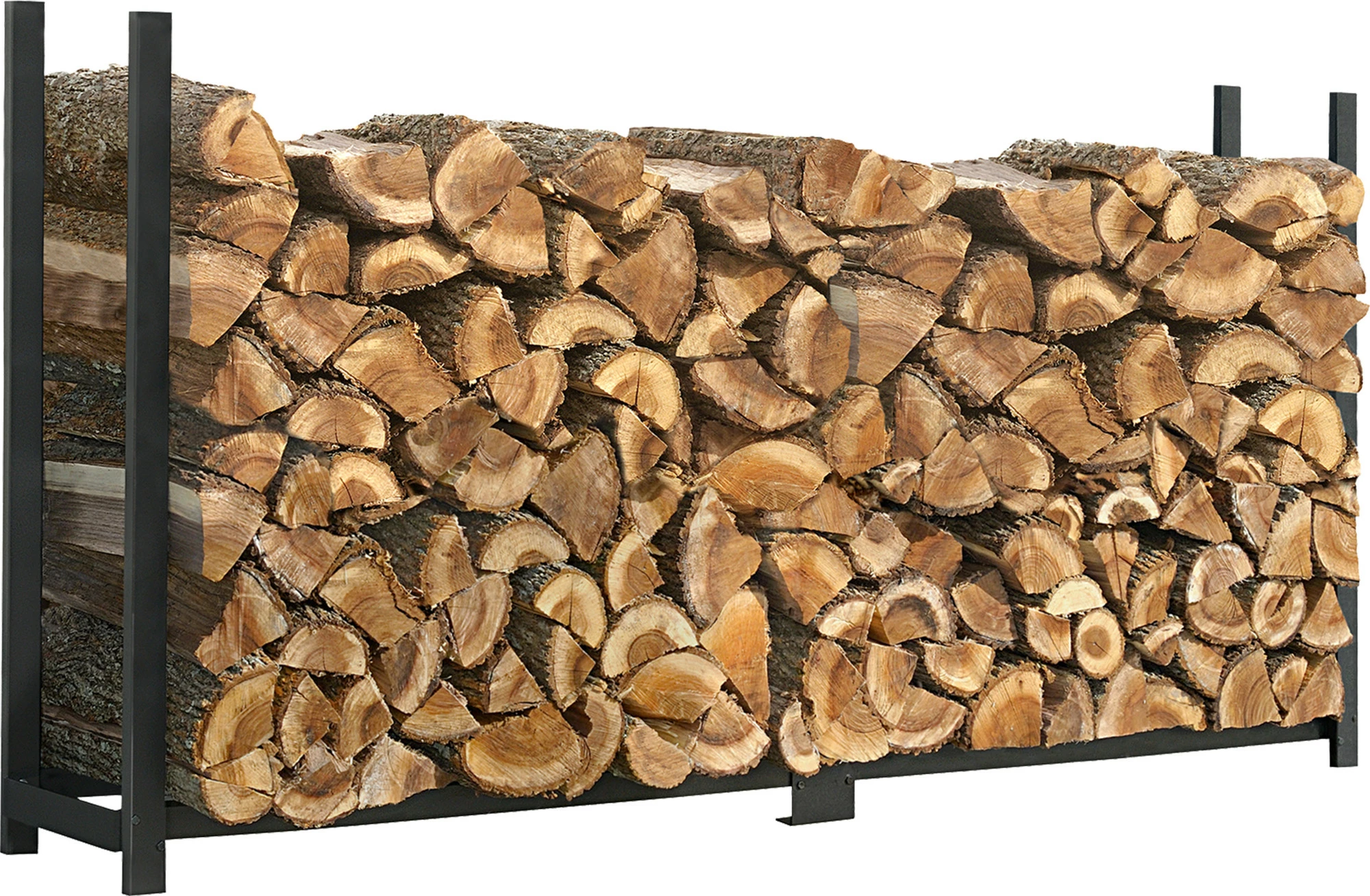 This outdoor firewood storage rack by ShelterLogic® features an open-air design. Easy to assemble. Limited one-year warranty.