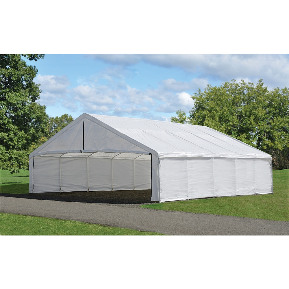 The ShelterLogic 30 x 30 ft. UltraMax Enclosure kit- seasonal Storage Solution made simple. Now you can quickly convert your 30 wide UltraMax Canopy to a functional, low cost enclosed shelter in minutes. Built to your canopies exact frame specs. The UltraMax enclosure kit easily attaches to your existing frame in minutes with bungee fasteners. Expand the use of your canopy, create more storage space. Ready to go out of the box.